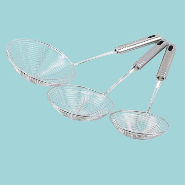 Poner a freír tus papas o uno que otro antojo al aceite caliente ya no es problema. con este colador podrás poner y escurrir tus alimentos sin que te salte una pizca de aceite en tus manos. tiene mango de acero inoxidable y fácil de lavar